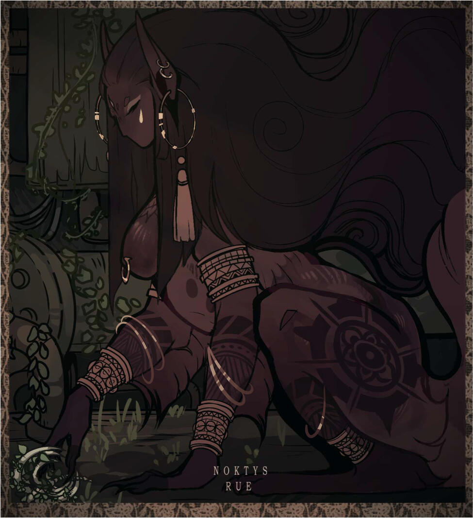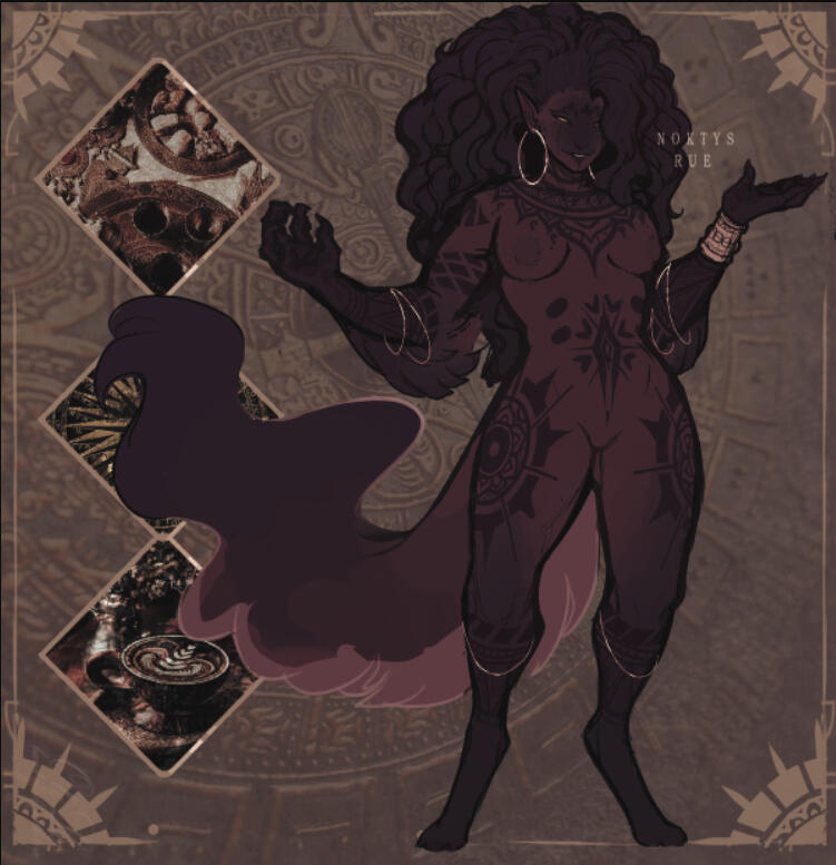 Baring many children with men of the Archipelago, the father who sired them was not allowed to ever see his offspring, as they would be raised within the royal capitals of his thought to be lover's fortress. Driven by envy and anger, he spread hateful rumor amongst the people; turning them against Aotz, raging a raid that would in the end kill the children she birthed, and with a silver arrow- shot it straight through Aotz' throat, forever binding her voice away after it's healing.Then, after her weakening, Acat poisoned Aotz with her toxic venom after a perilous battle to fight her deadly tides to wash away Aotz' lands, and though she lay near fatal injury to her serpent sister, she lived, while Aotz slowly succumbed to her inevitable death. Her tears stained her cheeks, forming the dotted markings on her face permanently.Centuries go by. Decade after decade her soul would be reborn, only to be sacrificed or killed due to prejudiced judgement. After a millenium of failed reincarnationes, one truly lived upon the thirteenth birth. Born within the high mountains of Sri Lanka in a clan of dying beastwalker, barely yet given a name before being set adrift to the islands of the Caribbean, where her father had last retreated before they could all have been wiped out.Vernon, a rich Trinidadian noble- upon realizing the child at his doorstep was indeed his blood, quickly took her in to raise the child- as Abydis would have wanted, naming the little one Cereza due to her affinity and likeness for cherries.Urging to see his lover again, unknowing of her death, and knowing the child would barely be accepted in her strange, fanged, sharp eared, tattooed nature, Vernon took Cereza to India. Hoping to find some clue of her mother, no matter how minute.